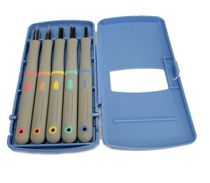 美術・画材・書道ロック付プラケース入。取り出しやすいスタンド付。左用もあります。柄の表面はエラストマー樹脂を使用しているので、すべりにくく使い易さ抜群です。5本組セット内容:半丸刀×1、切出刀×1、三角刀×1...