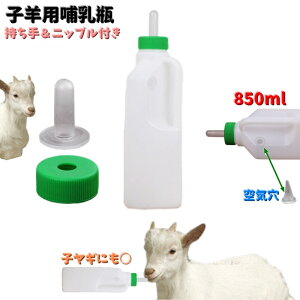 持ちやすいハンドル付きの子羊用哺乳瓶です♪ 子羊や子ヤギにお使いいただける850mlサイズ! ネジ式キャップでしっかり閉められて取外し可能なニップル付きです。 【サイズについて】 画像をご参照ください。 【カラーについて】 生産ロ