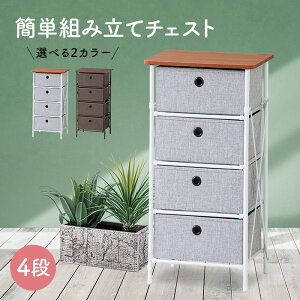 かんたん組み立て×コンパクト収納。ナチュラルな素材感の気軽なチェスト。 組み立ても簡単で、使わない時は折り畳んでコンパクトに収納できる、簡単組み立てチェストです。 木目調の化粧板の天板と、ツイード調の生地の引き出しがナチ
