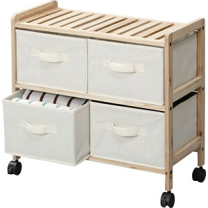 天然木と布地のチェストは、どんなお部屋にも馴染むナチュラルカラーのシンプルなデザインです。W34×D36×H103cm 天然木(杉) ポリエステル ユーザー組立商品。