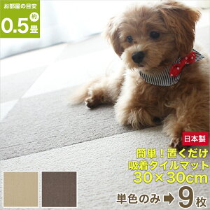 商品詳細 品名 30cm角吸着タイルマット サイズ 厚さ約3mm×30cm×30cm 9枚入り 素材 表面:ポリエステル 裏面:アクリル樹脂 カラー ベージュ/ブラウン 特徴 ・裏面は吸着加工しているので、フラッ...