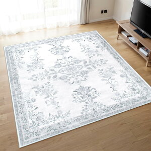 HAOCOO カーペット 2畳 185х185cm 正方形 ラグ 洗える オールシーズン適用 ペルシャ風 じゅうたん 滑り止め 低反発 防音 寝室 リビング ラグマット 抗菌防臭 耐磨耗性 花柄 ライトグレー...