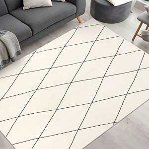 洗える 135х185cm 北欧風 ラグ オールシーズン適用 幾何学柄 約1.5畳 ホットカーペット対応 ふわふわ 滑り止め 低反発 防音 抗菌防臭 リビング ラグマット アンティーク アイボリ...