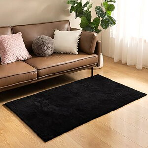 Ashler ラグマット カーペット ラビットファー調ラグ 滑り止め付き 肌触りがいい 厚み20mm ふわふわ 抗菌防ダニ おしゃれ 防音 冷房 床暖房対応 折り畳み 洗える 90×150cm ブラッ...