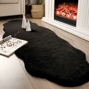Ashler ラグマット カーペット ラビットファー調ラグ 滑り止め付き 肌触りがいい 厚み20mm ふわふわ 抗菌防ダニ おしゃれ 防音 冷房 床暖房対応 折り畳み 洗える 60×180cm ブラッ...