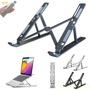 【アルミ合金製】【6段階角度調整】【折りたたみ】【収納袋付】アルミ合金採用で、軽量且つ放熱性に優れたノートパソコン用卓上スタンドです。6段階調整、姿勢が正されることで、長時間のデスクワークによる体への負担を軽減します。