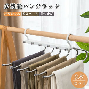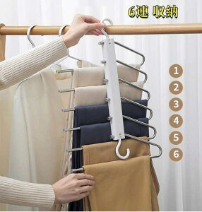 最大6本収納でき取り出しやすいズボンハンガー360°回転可能【2本セット】●最大6着収納できる吊り下げ棒が6本付属しているので最大で6着掛けることができる●手前に引っ張るだけ可動式だから取り出しスムーズ●掛けたまま折りたためる衣