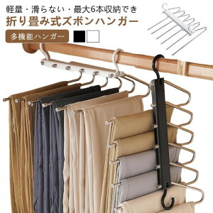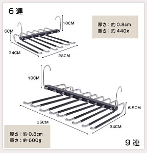 6連ズボンハンガー衣類を掛けた状態でも折りたたむことができ、スペースを節約したいときにおすすめ。吊り下げ棒が6本付属しているので最大で6着掛けることができます。手前に引っ張るだけだから、取り出しがスムーズハンガー部分はス