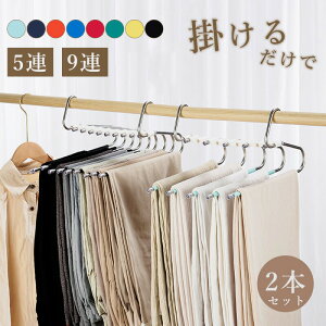 9連ズボンハンガー衣類を掛けた状態でも折りたたむことができ、スペースを節約したいときにおすすめ。吊り下げ棒が9本付属しているので最大で9着掛けることができます。手前に引っ張るだけだから、取り出しがスムーズハンガー部分はス