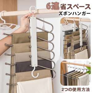ズボンハンガー 2本セット ステンレス製 6連 スラックスハンガー 折り畳み マジックハンガー 滑り止め ジーンズハンガー 省スペース 軽量 収納 落ちない 型崩れ防止 簡単 ズボン 【商品??...