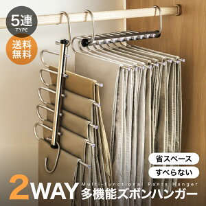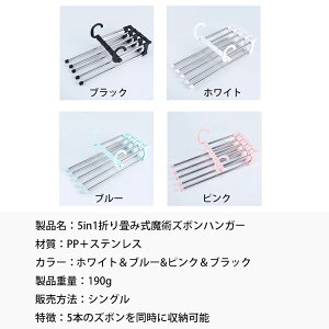 ズボンハンガー 5連 滑り止め付き 滑らない 折り畳み 多機能 縦