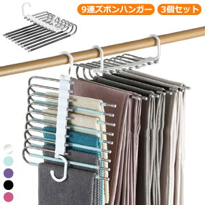同色3個セット【省スペース】9段ズボンハンガーは、80%のクローゼットスペースを節約1本づつハンガーに掛けるとかさばってクローゼットを圧迫・・・クローゼットスペースを節約しなから、スッキリ収納ができますパンツをかけたままハ