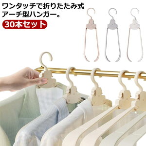 ワンタッチで折りたたみ式アーチ型ハンガー。【30本セット】からだのラインに合わせた立体構造のため、衣類の型崩れにくく、ジャケットやスーツをまっすぐ掛けられ、シワを作りません。カーディガンやニットも型崩れなく、収納しやす