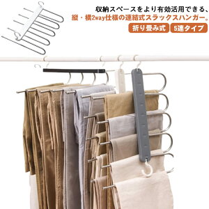 横2way仕様の連結式スラックスハンガー。衣類を掛けた状態でも折りたたむことができ、スペースを節約したいときにおすすめ。丈夫なステンレスフックなので高耐荷重と耐久性に優れています。滑り