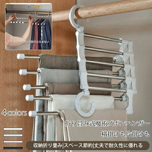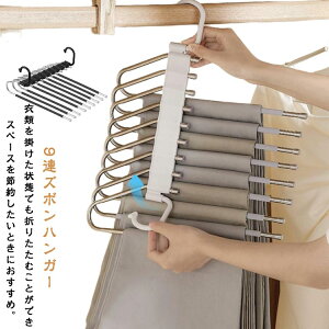 9連ズボンハンガー衣類を掛けた状態でも折りたたむことができ、スペースを節約したいときにおすすめ。吊り下げ棒が9本付属しているので最大で9着掛けることができます。手前に引っ張るだけだから、取り出しがスムーズハンガー部分はス