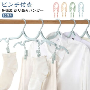 【折り畳みハンガー】【10個入】【多機能】【ピンチ付き】強化プラスチックとアルミ合金のネジを使用しており、耐久性と防錆性に優れ、長く使えるのもポイントです。小さな物(靴下や下着など)も干すことができるピンチが付いていま