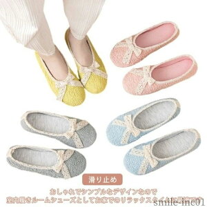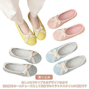 ルームシューズ かかと付き 折り畳み 携帯 ゴム底 滑り止め 綿100% 洗える リボン おしゃれ レディース 入院 介護 病院 産後 暖かい あったか 冷えない ムレない 軽い 秋冬 春夏 室内履き...