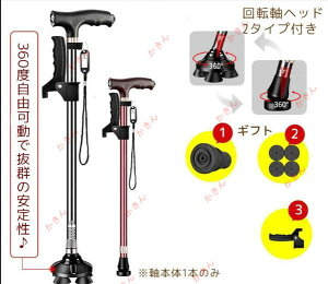 爆買 【4点自立式&360度回転】4点構造の自立式ので、うっかり杖を倒してしまう心配が減ります。どこかに立てかけて置いたりする必要もないため、両手が自由に使え、大変便利です。また、360度回転するので歩きにくい路面に合...