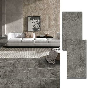 大理石 フローリング材 貼るだけ シール式 ビニル床シート 防水 滑り止め 賃貸ok 玄関 洗面所 店舗 トイレ DIY 模様替え 12枚 1畳以上 60.96 x 30.48cm (花紋石・グレー)ブランド色モデル花紋石...