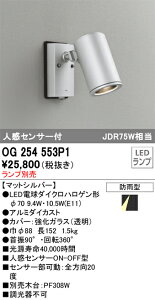 OG254553P1OG254553P1【商品画像のLEDランプは別売です。用途に応じ別途ご注文をお願いいたします。】屋外灯 スポットライト LED 人感センサー電気工事必要 畳数設定無し