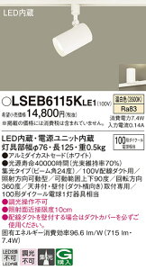 LSEB6115KLE1LSEB6115KLE1スポットライト 配線ダクト用 LED配線ダクト用 畳数設定無し配線ダクト取付型 LED(温白色) スポットライト アルミダイカストセードタイプ・ビーム角24度・集光タイプ 110Vダイク...