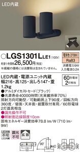 LGS1301LLE1LGS1301LLE1スポットライト LED電気工事必要 畳数設定無し天井直付型・壁直付型・据置取付型 LED(電球色) スポットライト アルミダイカストセードタイプ・拡散タイプ 白熱電球60形2灯器具相当器具分...