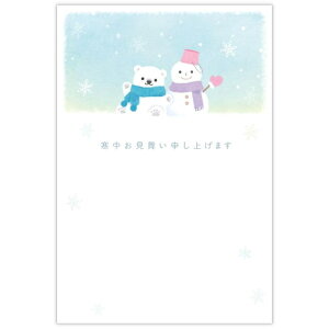 白くまと雪だるまをほっこり優しいタッチの寒中見舞いはがきメッセージ/可愛い 寒中お見舞い/季節 挨拶/お友達/家族年賀状を出しそびれてしまったときや、喪中の方へのご挨拶に使える寒中見舞いはがきです。あたたかみある色合いと可愛