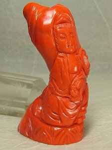 サイズ(約):90×37×28mm 重さ:104.5g ●珍しい素材、珊瑚の置物。元の形をそのまま生かし、縁起柄の観音様が彫り込まれています。中心部に白い芯が通った珊瑚です。コレクションに。 ※出品物は自然素材のため...