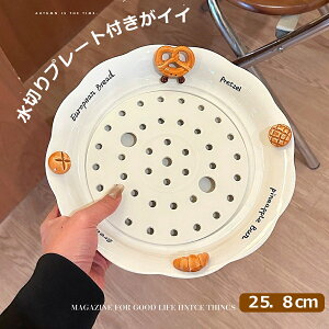 この水切りプレート付きの大鉢は、パンやケーキをモチーフにしたユニークなデザインが特徴です。25cmのサイズで、餃子や麺類、刺身など多用途に使用できるため、食卓を華やかに演出します。陶磁器製の白いプレートは...