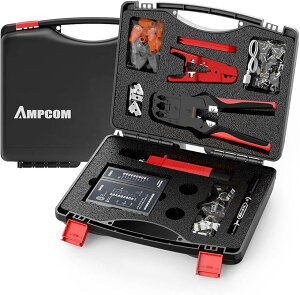 商品コード2b623fn1uc商品名LANケーブル自作工具キット 12点工具セット 圧着ペンチ ケーブルテスター プチダウン工具 外皮むき工具 モジュラープラグ 収納ケース付きブランドAMPCOM※ 他ネットショップでも併売しているた...