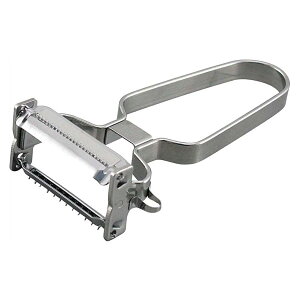 野菜の千切りにぴったりなのが、この千切りピーラー。ステンレススチールの刃で、にんじんやじゃがいも等の千切りをすることができる。仕上がりはやや太めの千切りなので、食感を残したいサラダやきんぴらごぼうなどにもちょうどいい