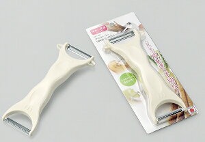 【商品説明】●一台で千切り・皮むき両方ができる、しっかりにぎれて持ちやすいピーラーです。(日本製)●便利なじゃがいもの芽取り付きです。【商品詳細】●材質/スライス刃:ステンレス刃物鋼、クシ刃:ステンレススチール...