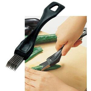 ●レマンションは、人間工学に基づいた握りやすい形状の 持ち手になっているため、キュウリなどを均等な厚みで 8枚の薄切りをするのに、たった1回の動作でラクラク できます。※フランス