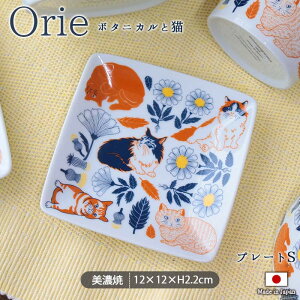 ・【猫と花の彩り豊かなプレート】5匹の猫と花があしらわれたボタニカルな雰囲気と個性豊かな猫が彩り豊かな角プレート。かわいらしい柄が食卓を彩ります◎ ・【マルチに使えるミニプレート】12cmの角型なので副菜の取り分けとしてもお
