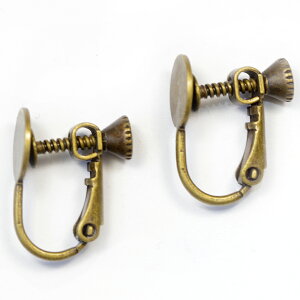 手芸金具 『イヤリング ネジバネ 4mm皿芯立 アンティークゴールド E-23』 アクセサリー作りに♪ バネ式のイヤリングです。 ネジで微調整ができます。 片穴のパール・ビーズなどを接着剤で貼り付けて使用します...