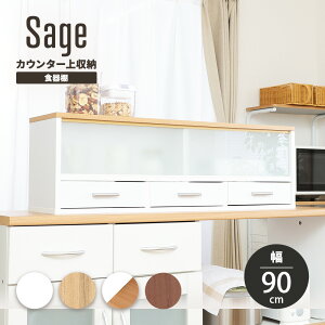 カウンター上で使用できる便利な食器棚。ガラス戸と引き出しは両面についているので、どちらからでも出し入れ可能です。ガラス戸には、調味料や食器などを収納できます。引き戸なので省スペースで使用可能。