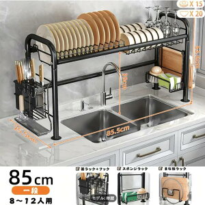 シンク上の2段式食器乾燥ラック、錆びにくいキッチンオーガナイザーと調理器具ホルダー&まな板収納、大容量多機能排水バスケット(皿・包丁・ガラス製品用)、ガラス製品ラック | スリークブラック仕上げ | 頑丈な構造、キッチンカウン