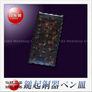 銅製のペン皿です。高岡銅器の和風インテリア小物。重厚感と存在感があり、ペン皿としてはもちろん、インテリアや贈答記念品としてもおすすめです。サイズ個装サイズ:10×30×5cm重量個装重量:500g生産国日本