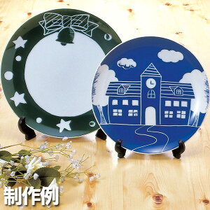 釉薬塗皿 焼成温度:800℃(電気窯用) サイズ:直径205〜215mm 白い陶器に色釉薬を塗ったものです。 ニードルや釘などの先のとがった用具で釉薬の塗布面をひっかいて絵柄を描くと、白地が出てきます...