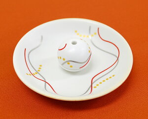 日本の伝統色を用いた、 純和風で落ち着いた雰囲気の有田焼の香皿です。白地に三色の曲線と点線が描かれた、 和モダンテイストでとてもシンプルなデザイン。 どんな方にも好まれますので...