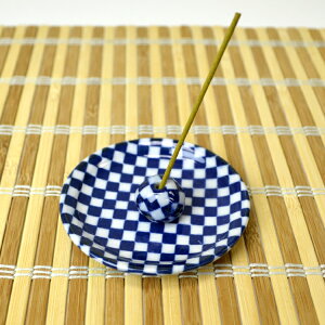 お線香メーカー 薫寿堂さんより、シンプルな香立て付きの香皿が届きました。 「市松」は、名前のとおり 市松柄です。 紺と白のコントラストの強い色めです。大好きな香りをお部屋中に充満させて、 あなただけのくつろぎタイムを作って