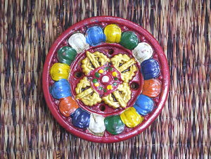 E120円お香 チベット仏教尼寺院コパンアニゴンパのお香462円 ネパールのテラコッタカラフル香皿「ダブルドルジェ柄