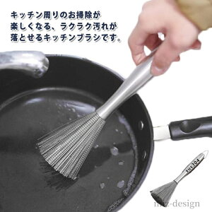 キッチン周りのお掃除が楽しくなる、ラクラク汚れが落とせるキッチンブラシです。ステンレス鋼の毛なので、耐久性があり、壊れにくいです。長期間使用できます。鉄器・鉄製フライパンの油汚れ、コゲつき落としに!乾湿両用で手を傷め