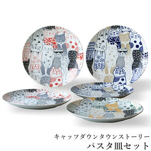 【キャッツダウンタウンストーリー パスタ皿セット】 世界中で愛されるねこちゃんがユーモアと個性あふれるスタイルの8匹がぞろりぞろり。 可愛らしい猫いっぱいの柄が特徴的で食卓が明るく彩ります。 ─┘─┘─┘─┘─┘─┘─┘─