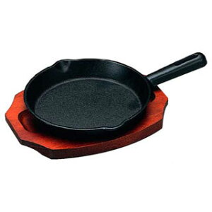 自宅でレストラン気分が味わえる鉄鋳物製ステーキ皿。鉄鋳物の重厚なつくりで、高級感がたっぷり。熱いステーキ皿を移動する時に便利な木製敷板付。ガス火はもちろん、IHクッキングヒーターでもオーブンでも使用OK...