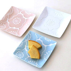 ■お友だち登録でクーポンプレゼント ※こちらの商品は2枚セットでお送りいたします。 縁起の良い梅模様 うつわいっぱいに広がった、梅の花が華やかな取皿です。 柔らかい水色が、食卓にふんわりと彩りをプラス。 つるんとした器肌に、