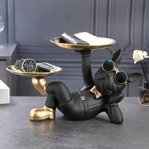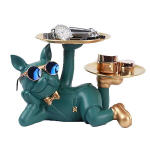 皿を捧げる犬さん 寝そべっている犬さん フレンチブルドック 置物 眼鏡付き 鍵置き スマホ/眼鏡/リモコン/ハンコ キー収納 面白い 犬オーナメント 玄関に飾る 装飾 飾り テーブル 卓上