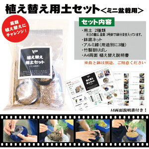 商品説明 植え替え用土セット(ミニ盆栽用) 当店オリジナルの植え替え用土セット、ミニ盆栽用です。 ミニ盆栽の植え替えをスムーズに行うための、便利で実用的なセットです。 (※苗と鉢はお好きなものを別途ご準備ください。) 『ど
