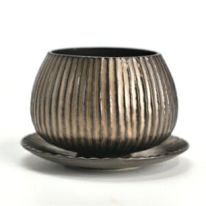 メーカー:かみ山陶器品番:2314-14おしゃれな信楽焼の植木鉢!信楽焼 植木鉢 ソリひねり金彩 6.5号特徴●山野草や多肉などにピッタリな信楽焼の植木鉢です。●シンプルに山野草を植え付けても良し、多肉・サボテンを植えて和風仕立