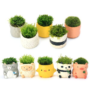 苔盆栽・益子焼溶岩・抗火石鉢陶器鉢こけだま苔・単品流木・石付き癒しのミニ苔苔テラリウムシリーズかわいらしいアニマル鉢と風情あるコケで癒しの空間を演出!お得な3個セット(盆栽)苔盆栽 おまかせリトルアニマル(3鉢)サイズ